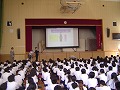 本校体育館において、カンコー学生服の方をお招きして、標準服着こなし講座を行っていただきました。「学生になぜ標準服が必要なのか」「プライベートウェアとフォーマルウェアとオフィシャルウェアの違い」「なぜ標準服を着崩してはいけないのか」など、わかりやすく話していただきました。