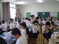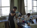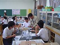 染色の様子の続きです。各自で決めた色を出せるように、染料の調合をおこなっています。住友化学からたくさんの方に来ていただいて、丁寧に指導していただいています。