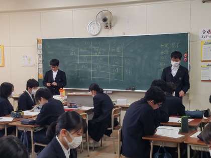 3年社会科の授業で裁判員制度について過去に勉強しました。そして裁判員制度の体験で、各クラス模擬裁判を行いました。題材は三匹の子豚です。自分の意見を相手に伝えることが難しそうに感じました。論理的に話すいい練習になったでしょうか?各クラス五人の生徒には簡単なロールプレイをしてもらいました。ご協力ありがとうございました。