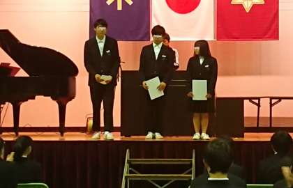 皆勤賞の生徒を表彰しました。