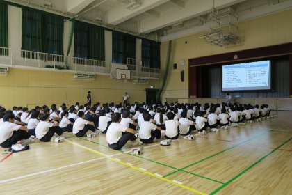 9月1日(月) 5限 体育館にて 1年生 スマホ SNS 安全教育 がありました。
