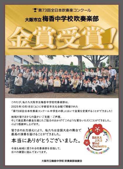 吹奏楽部 全国大会金賞