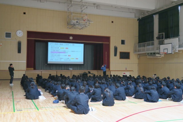 此花区役所 地域サポート課の防災士の方に来校してもらい講話をしていただきました。