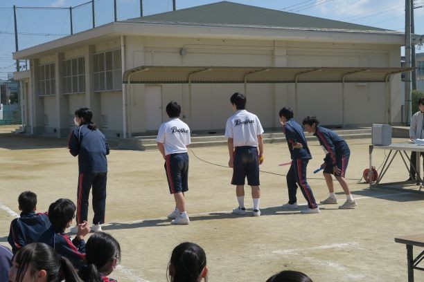閉会式で競技の成績発表をしました。2年生は、楽しそうに元気よく取り組んでいました。