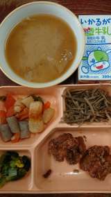 明日(22日)の給食メニューは… チキンライスです。 スプーンがあると便利です...