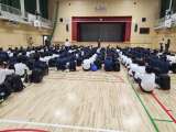 本日の全校集会の様子です。 今日は校長先生からの修学旅行での3年生に関するお話が...