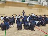 解散式の様子です。 最後に体育館内で学活をして、解散します。