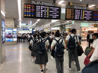 令和元年5月28日(火) 3年修学旅行 公開日 2019/05/28 更新日 2019/05/28 学校行事 大阪市立此花中学校57期生は、 本日より3日間、修学旅行で関東方面に向かいます。 『時間やマナーを守り、学びを修めよう。』 この目標を全員が達成できたと言えるような 実りある修学旅行にしてくれることを期待しています。 出発式を終えて、いざ新幹線で新横浜駅へ 「いってきます!」 いいね(0)