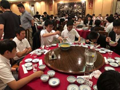 中華料理なので、みんなで円卓を囲んでターンテーブルをうまく使いながら