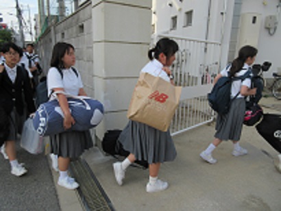 修学旅行中の57期生は、無事にバスで学校へ帰ってきました。