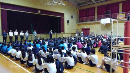 曇天模様の中、此花中学校を主会場に伝高球技大会が開催されました。この大会は、伝法・高見地域の幼稚園・小学校・中学校のPTA各団体等の親睦を図ることを目的に春と秋に行われている大会です。此花中学校からは、毎回男女卓球部が参加させていただいています。令和最初の優勝目指して各チーム頑張ってください。(写真は、開会式の様子です。)