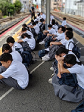 しおりの行程通り、59期生を乗せた電車は西九条駅に向かっています。