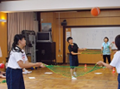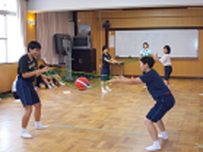 本日放課後、レクリエーションクラブ第2回目の活動がありました。前回と同じく少し寂しい人数でしたが、大阪市レクリエーションセンターの方々と一緒にスポーツを楽しみました。今日は、テンカボールとネットパスを体験しました。写真は、ネットパスの様子です。どのチームも上手にボールを扱っていました。次回はもっと多くの生徒の参加を待ってます。