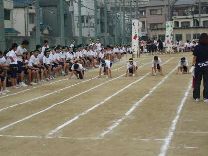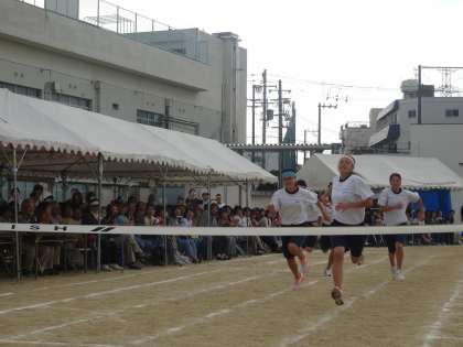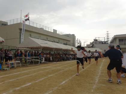 午前の全校生徒による短距離走の結果、各学年上位5名による
