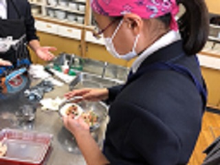 12月10日(火) 2年生調理実習 公開日 2019/12/10 更新日 2019/12/10 授業風景 今日は餃子を作りました。 餃子を包むのは少し難しかったようですが、 いくつか作るうちに上手になっていました。 ただ、今日はここまでの作業で食べません。 冷凍しておいて、来週の実習で焼いて食べます。 楽しみですね。 いいね(0)
