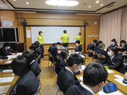 本日の放課後、約40名の2年生が、1月18日の土曜授業で行う防災訓練の準備を行いました。