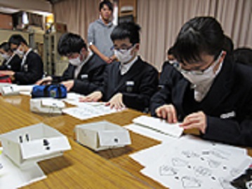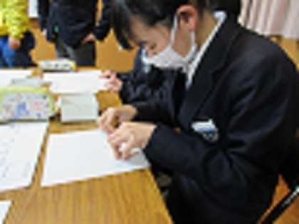 区役所の方々に来ていただき、紙食器・紙スリッパの作り方の説明を受け、練習をしました。