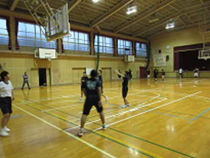 体育館には男女バスケットボール部員の元気な声が響いていました。