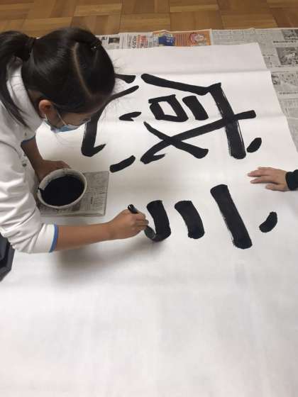昨日の放課後から生徒会役員が文化発表会の準備を行っています。今回のスローガンは「感謝」です。生徒会役員の生徒たちがたくさんの「感謝」を全校生徒、教員から集めました。その感謝を使って1つの作品を作ります。完成を楽しみにしておいてください。