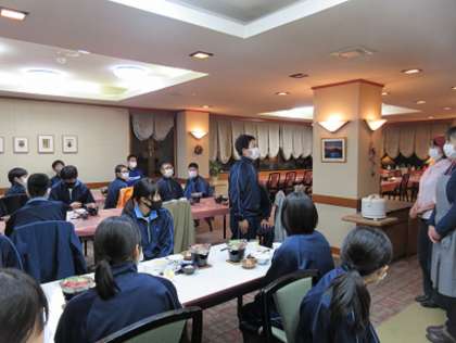 各クラス、宿泊する旅館で、入館式を行い、夕食をいただきました。