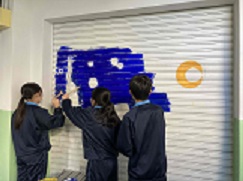 美術部では現在、南館1階のシャッターにペイントを施すシャッターアートに取り組んでいます!