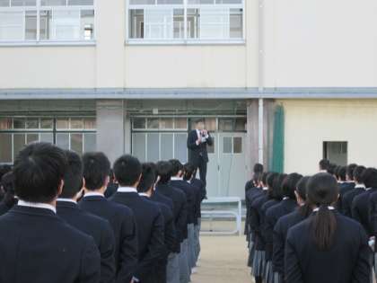 本日、全校集会で此花区長様がお話をしてくださいました。