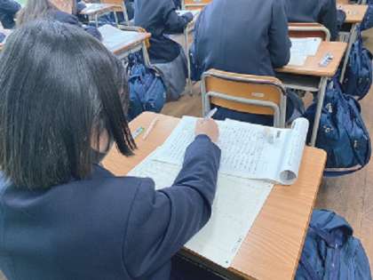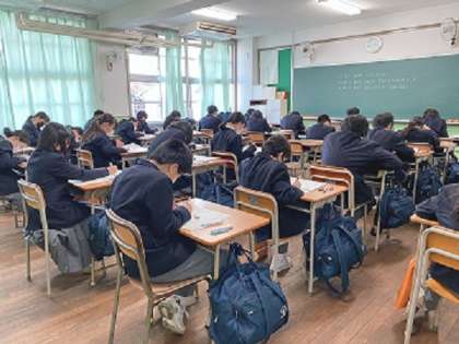 昨日の5,6時間目に1年生は漢字検定を受けました。国語の授業や、総合の時間を使って検定に合格するために一所懸命に勉強してきました。小学校から今まで学んできた漢字の力を発揮できたことでしょう。昼休みも友達同士で問題を確認し合っており、最後まで頑張って漢字検定の勉強に取り組んでいました。結果はすぐには返ってきませんが、今まで頑張ってきた結果が表れているはずです。しっかりと見直して自分の成長につなげていきましょう!