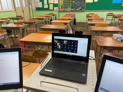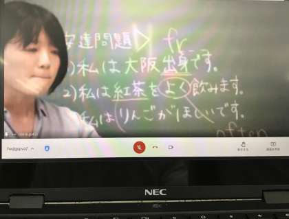 1年生では、午後に英語のオンライン授業を行いました。最初は宿題の答え合わせと解説をしていきました。画面を共有しながら進めていたのでみなさんの顔が見えず、きちんと伝わっているか不安でした。しかし、その後の黒板を使った授業では、双方向で質疑応答もあり、学校での授業により近い形で出来たのではないかと感じました。明日は数学のオンライン授業です。先生の指示をしっかり聞いて、有意義な学習の時間にしましょう。