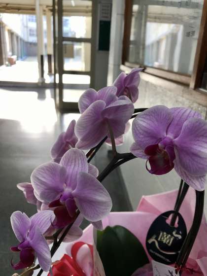 これは此花中学校創立60周年を記念し、長年にわたり此花中学校に勤務されていたある先生が贈ってくださった花です。勤務する場所は変わっても、此花中学校のことを思ってくださる人がいるのはとても嬉しいことですね。