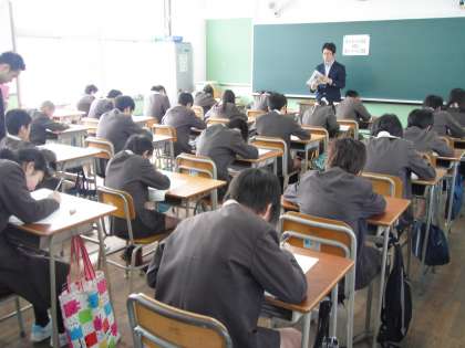 まず体育館で中学校に入学するにあたっての心構えを聞き、次に入学前テストを行いました。小学校とは違うテストの受け方を学び、少し中学校の雰囲気に触れることができたのではないかと思います。