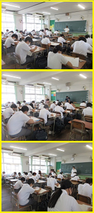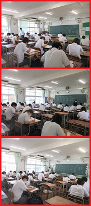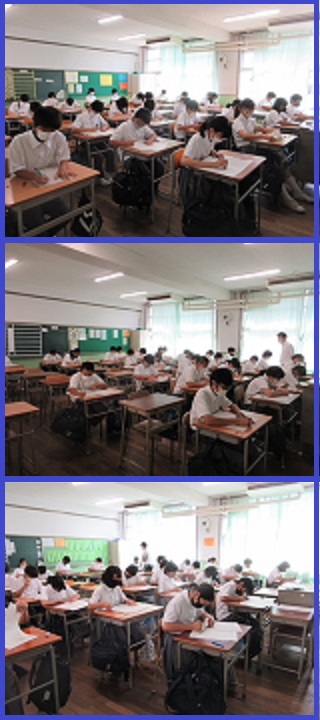 8月27日(金) 1・2年実力テスト 3年第2回実力テスト 公開日 2021/08/27 更新日 2021/08/27 授業風景 本日は各学年実力テストが行われています。 1年生は初めての実力テスト、定期テストとは違う範囲のないテストに精一杯取り組んでいます。 2年生は去年の経験を活かし、3年生は受験に向けて、真剣に取り組んでいます。 点数を取るための準備だけでなく、その後の振り返りも行いながら、今回のテストを意味あるものにしていきます。 いいね(0)