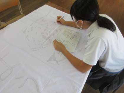 夏休みの間に考えてきた思い思いの作品たちの中から選ばれたものが、今から旗になっていきます。