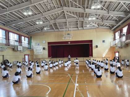 2年生になって初めて体育大会の学年練習を行いました。10月1日の体育大会に向けて行進やラジオ体操を【一所懸命】に取り組みました。60期生みんなが心を一つにし、最高の体育大会にしましょう。