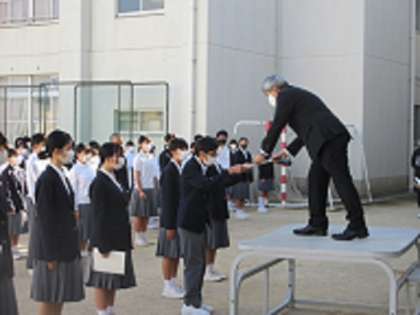 10月18日(月) 生徒会役員認証式 公開日 2021/10/18 更新日 2021/10/18 学校行事 本日、生徒会役員の認証式が行われました。 旧生徒会役員は退任の挨拶、新生徒会役員は所信表明を、代表して各会長が行いました。 新生徒会役員は新たな役割と責任、旧生徒会役員の想いを引き継ぎ、頑張っていきましょう。 いいね(0)