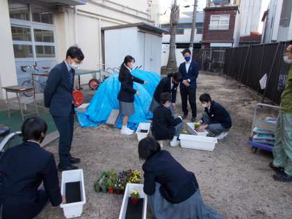 その後、3年生の美化委員会のメンバーが代表して緑化活動に努めてくれました。