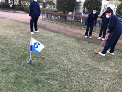午後に予定していたドラゴンカヌーの体験は、強風の為に中止となったため急遽、パターゴルフに変更となりましたが、生徒たちは全力で楽しんでいます。