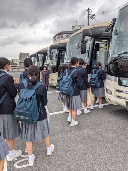 倉敷美観地区のフィールドワークを終え、バスは此花中学校に向けて出発します。