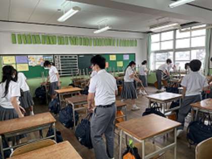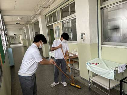 此花中学校では、生徒全員で学校全体を清掃しています。そのため、常に綺麗に保たれており、勉強に集中できる環境が整っています。