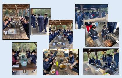 野外炊事では、ガスも電気も使わずに調理をするカレー作りに挑戦です。薪を組んで火を起こしたり、水の量を道具を使わず測ってごはんを炊いたり、野菜を切ってカレーを作ったりと、慣れない作業がたくさんある中、苦戦しながらも、とても楽しそうに活動していました。みんなで作ったカレーはとてもおいしかったようです。