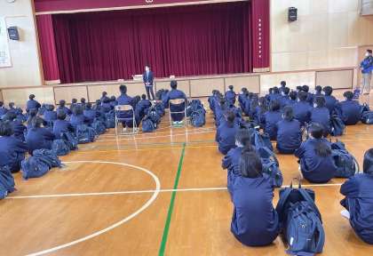 本日、一泊移住が終わり無事に学校に戻ってきました。60期生はコロナ禍でスタートした学年でした。そのため今まで校外学習をしたことがなく、はじめて学校を出る行事が今回の一泊移住でした。この2日間、失敗がたくさんあり、指導される場面もありました。しかし、そのたびに成長を見せることができるのが60期生。クラスごとに取り組んだレクリエーションや大縄跳び大会。クラスのみんなと協力する大切さをより強く感じることができた時間でした。