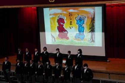 音楽部と美術部の発表は「泣いた赤鬼」でした。ユーモアを交えつつ息の合った発表でしたね。あれだけのものを完成させるのには多大な時間がかかったことと思います。本当にお疲れさまでした。