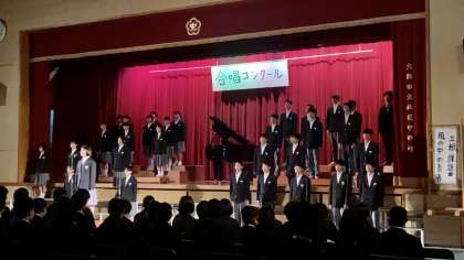 59期生は、唯一、合唱コンクールを経験した学年として、また、最高学年として、緊張感が漂う舞台で、堂々とした合唱を後輩に披露しました。それは、これまでの先輩が、後輩に見せてきた姿と同じで、「目の前のことに一生懸命頑張ることのすばらしさ」や、「頑張ることはカッコいい!!それを応援することもカッコいい!」という、これまでの先輩が培ってきた「思い」が繋がった瞬間でした。
