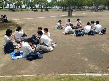 メリケンパークで班ごとに昼食をとりました。