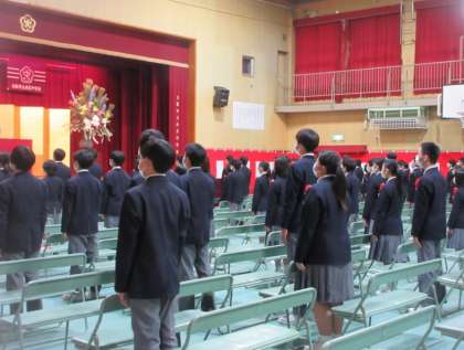 最後の校歌斉唱。3年前、入学式で先輩の歌声を聴いている姿が、昨日のことのように思い出されます。母校の「誇り」を胸に、最上級生としての素晴らしい歌声が会場に響きました。
