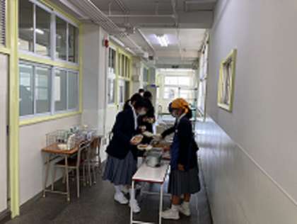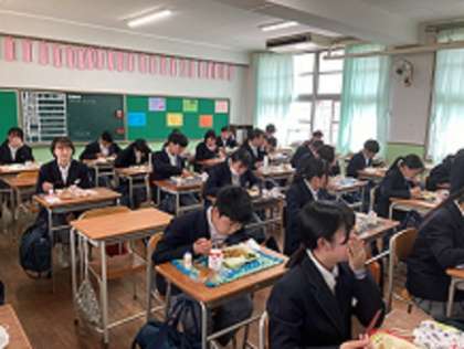 本日の給食の様子です。5限に学級写真の撮影があったため、急いで給食の準備をしていました。1年生も給食3日目で少しずつ慣れてきました。1年生の配膳が終わるころ、3年生の教室ではもう食べ終わりそうでした。さすが3年生です。給食の準備も早く、2年間の成長を感じる一場面でした。また、先生たちの手違いで1年生の1クラスが撮りなおすことになりました。暑いなかの撮影でしたが、誰一人愚痴を言わず、協力してくれました。素晴らしい此中生の姿が見れました。