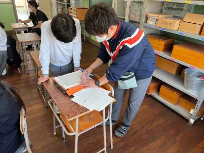 コロナ禍で授業数を確保するため行ってこなかった此花タイムを、今年度2年ぶりに再開しました。この時間は、それぞれの学年が決められた教科の学びなおしを行います。5科の先生が学年を越えて、生徒たちに授業をします。また、すべての先生が参加し、学力向上のために学校全体で取り組みます。1年生は、小学校の算数を基本から復習しました。2年生は、英語を習熟度別に4クラスに分かれて授業を行いました。3年生は、漢字の入試問題を解きました。生徒たちは一生懸命学習に取り組んでいました。