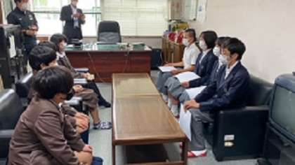 写真は、代表生徒からこの取り組みの内容について説明している場面と、渡している場面になります。今週木曜日には、高見小学校にもポスターを寄贈しに行く予定です。