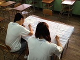 体育大会に向けて、クラスの有志のメンバーで学級旗の作成が始まりました。