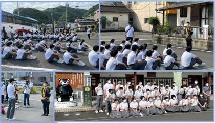 60期生は、一晩お世話になりました日奈久温泉の方々とお別れをし、鹿児島へと向かっています。今日は鹿児島で班別の市内散策と選択別のアクティビティ、指宿に移動して砂蒸し風呂の体験も予定されています。今日も一日、暑くなるので、水分補給等で熱中症対策に気を配りながら見守っていきます。