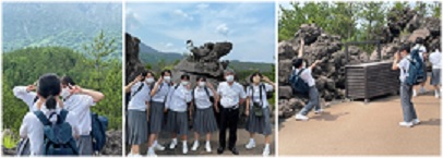 この旅の最後の取り組みである桜島での島内見学を行いました。曇り空の中ではありましたが、雄大な桜島の稜線を拝むことができました。残念ながら噴煙は上がってはいませんでしたが、薩摩富士の別名通り、すそ野の広がった美しい成層火山を目にすることができました。各自思い思いに記念写真に興じていました。